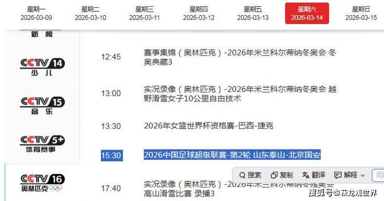 北京时间3月14日15:30,2026中超第2轮,山东泰山将坐镇济南奥体中心迎战北京国安。央视奥林匹克频道CCTV16将进行现场直播!球迷也可通过北京体育、咪咕视频、央视频等网络平台观赛。双方攻击火力都很猛,泰山的瓦科、克雷桑、泽卡和国安队的法比奥、张玉宁都状态正佳。