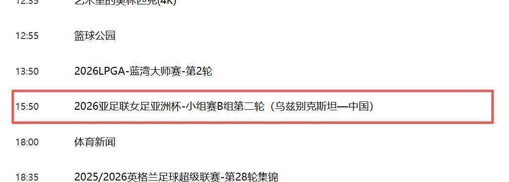 体育,足球,波胆,反波胆,角球,串关,大小球,世界杯,欧洲杯,比分,足球比分,赛事,足球赛事,电竞赛事,体育赛事直播,足球直播平台,世界杯直播,足球直播,体育直播,NBA直播,游戏直播,LOL直播今天下午16点,中国女足将迎来2026年女足亚洲杯小组赛的第二场较量,对手是乌兹别克斯坦女足。 这场比赛不仅关乎小组出线,更直接影响到淘汰赛的对手选择。 一个关键的背景是,如果中国女足能够以小组第一的身份晋级,将极大概率在四分之一决赛中避开本届赛事的头号夺冠热门日本女足。 央视体育频道CCTV5将从下午16点开始直播本场比赛。