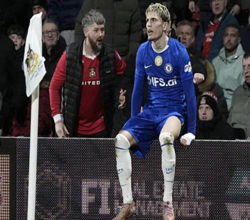体育播报03月08日宣 足总杯1/8决赛,切尔西客场对阵雷克瑟姆,加时赛第23分钟,10人雷克瑟姆角球机会破门,但越位进...