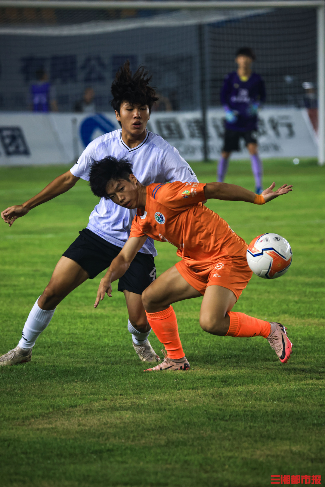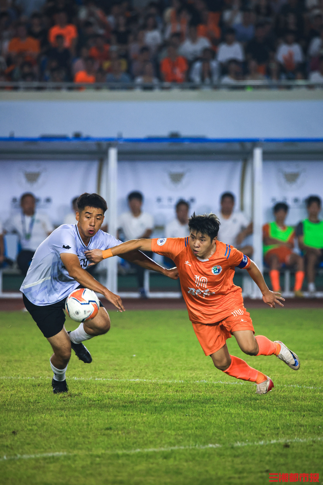 看台上,一位观众将邵阳队球迷服和大湾区队球迷服叠穿,为来自大湾区的球队加油,也为故乡邵阳的球队加油;球场内,球员们的每一次精准的传球,每一次奋力的拼抢,每一次破门后的怒吼,都不仅仅是为了胜负,那是在用最酣畅淋漓的方式,向故乡证明:游子在外,拼搏依旧,血性未改。