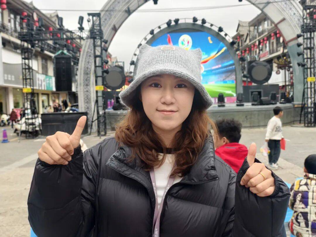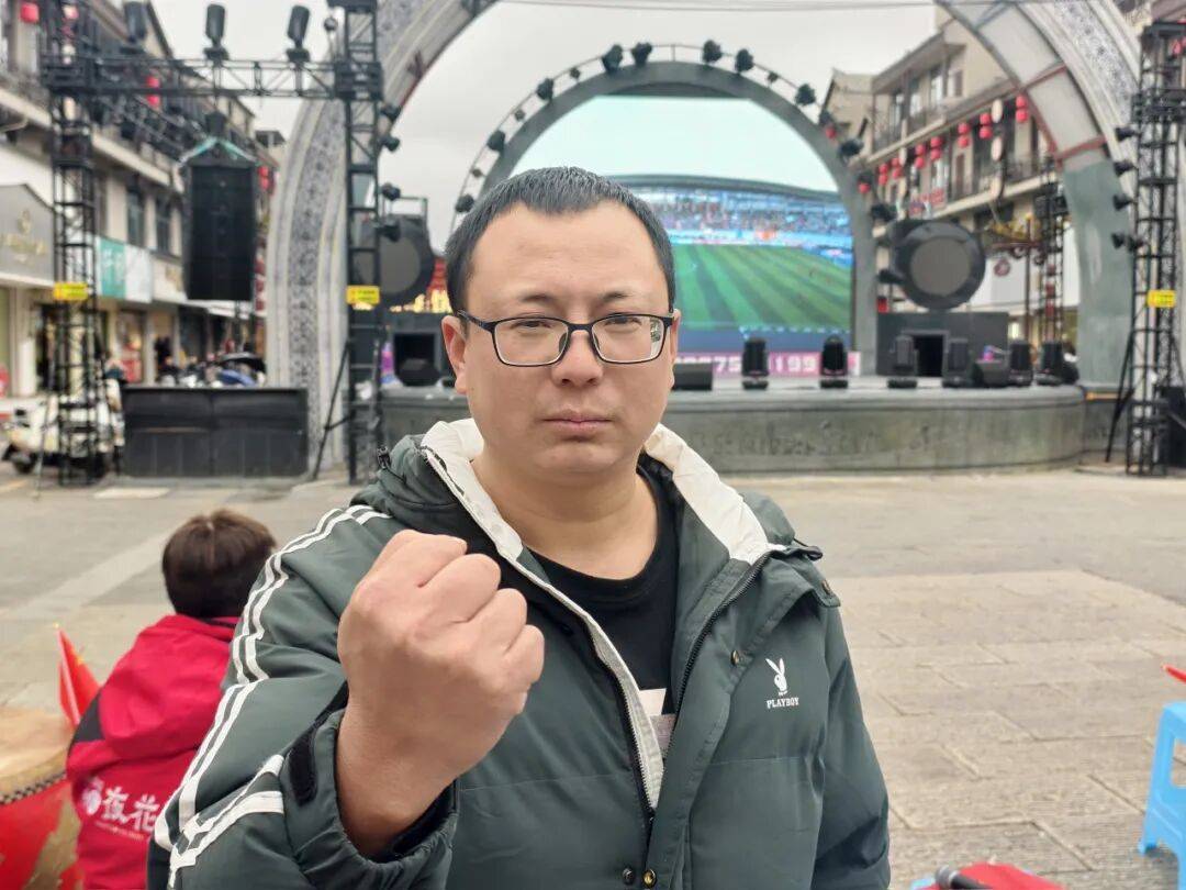 霎时间,原本热闹的商业街更添几分沸腾——沿街商贩停下手中活计,逛街的群众驻足不前,买零食的孩子拽着家长往大屏前挤,不一会儿聚起百来号人,一场“家门口的足球狂欢”就此开场。