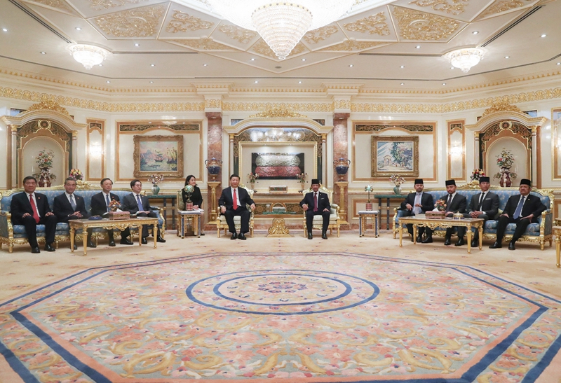11月19日,国家主席习在斯里巴加湾同文莱苏丹哈桑纳尔举行会谈。新华社记者 鞠鹏 摄
